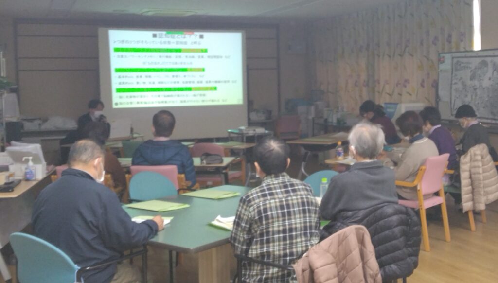 12月13日(土)、美郷デイサービスフロアーにて、こころのホスピタル町田 臨床心理士の藤原啓先生をお招きし『認知症』について講座を行いました。
